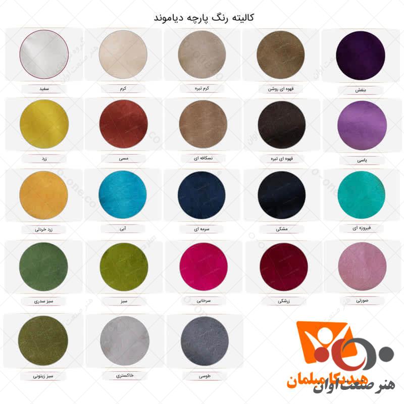 روکش صندلی از پارچهی مخمل دیاموند بوده و در بیش از ۲۴ رنگ مختلف قابل سفارش است؛ از رنگهای خنثی و مدرن تا رنگهای خاصتر برای فضاهای لوکس.